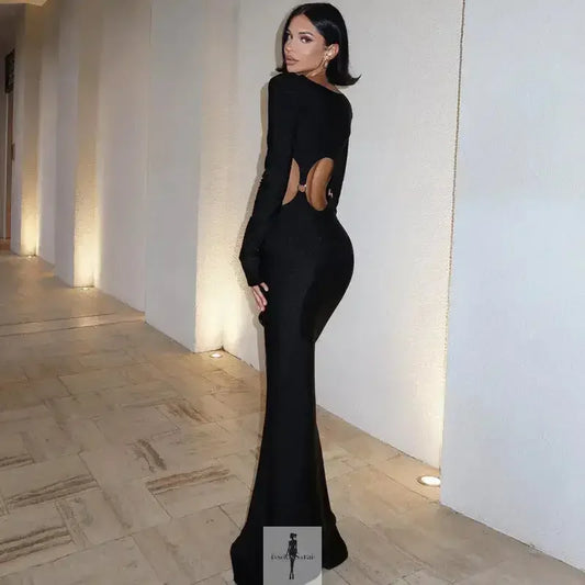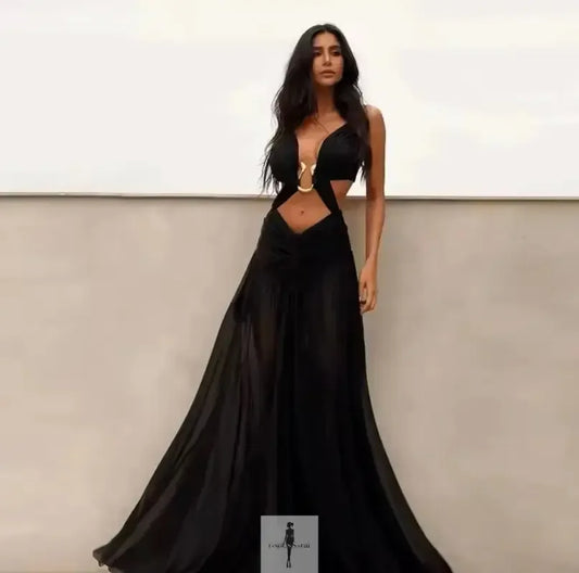 Hollow Out Metal Ring Buckle Splicing Maxi Dress