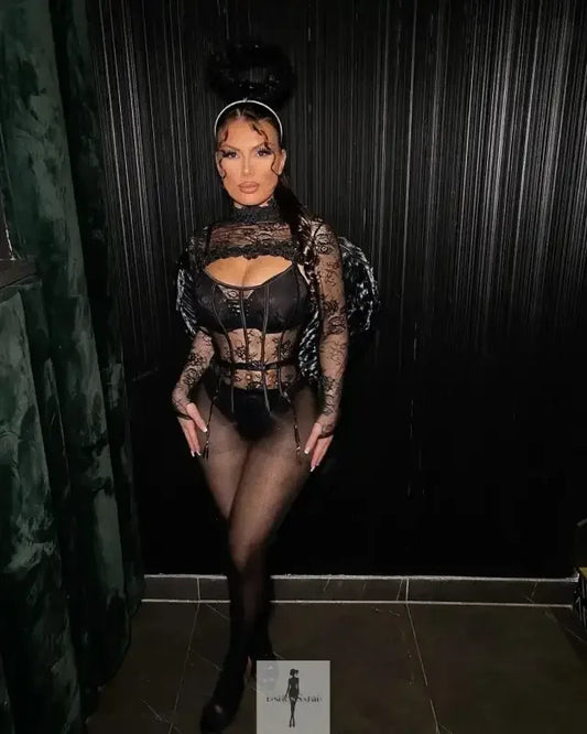 New Mesh Lingerie Bodysuit with Matching Gloves