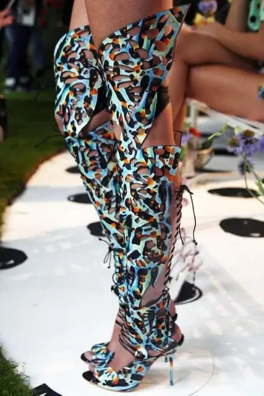 Cut Out Leather Over The Knee Boots